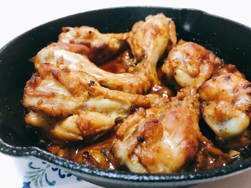 プッタネスカソースに、パスタの代わりにチキンを合わせたものです。